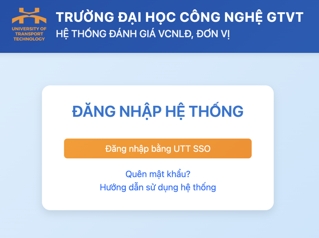 Quay lại trang đăng nhập: https://dvc.utt.edu.vn/danhgiacb tiến hành đăng nhập bằng UTT SSO.